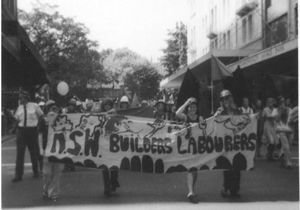 الأعضاء الإناث في مسيرة اتحاد عمال البناء الأسترالي في اليوم العالمي للمرأة في سيدني 1975