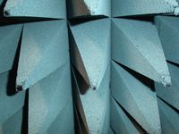 تتمتع موجات الترددات الأعلى بأطوال موجية أقصر وأعلى في الطاقة، بينما تتمتع موجات الترددات المنخفضة بأطوال موجية أطول وأقل في الطاقة، وفقاً للعلاقة حيث تمثل lambda الطول الموجي، بينما تمثل v التسارع المرحلي للموجة، وتشير إلى التردد. لحماية طول موجي معين، يجب أن يكون المخروط ذو حجم مناسب لامتصاص هذا الطول الموجي. يتم تحديد جودة أداء المواد الماصة للأشعة بالمواد ذات التردد الأدنى في اختبار التشغيل، حيث تكون الانعكاسات المقاسة من الأسطح الداخلية هي الأهم مقارنةً بالترددات الأعلى. المواد الهرمية الماصة للأشعة هي الأكثر امتصاصاً عندما تكون الموجة العارضة عند المعدل الطبيعي لسطح الغرفة الداخلية ويكون ارتفاع الهرم مساوياً تقريباً لـ ، حيث تشير إلى الطول الموجي للفراغ الحر. وفقاً لذلك، فإن زيادة الارتفاع الهرمي للمادة الماصة للأشعة بنفس حجم القاعدة (المربعة) يحسن من فعالية الغرفة عند الترددات المنخفضة ولكن ينتج عنه زيادة في التكلفة وانخفاض حجم العمل الممتص داخل غرفة ذات حجم محدد.