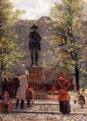 In 1851, Frederick William IV, Frederick's great-great nephew, included Seydlitz's name on the Equestrian statue of Frederick the Great in Berlin, honoring those who had helped to build the Prussian state. Seydlitz holds a position of honor as one of the four full-sized mounted figures, sharing the first tier of the plinth with the King's brother, his cousin, and Hans Joachim von Zieten.[26] A bronze sculpture installed at Wilhelmplatz, in Berlin, was created by Anton Lulvès, a copper worker from Hamburg.[27] إسإمإس Seydlitz, representing the first generation of battlecruisers, was ordered in 1910 and commissioned in May 1913, the fourth such vessel built for the Imperial German Navy's High Seas Fleet.[28] The heavy cruiser Seydlitz, of the Admiral Hipper، طراز, was launched in 1939, but never completed.[29]