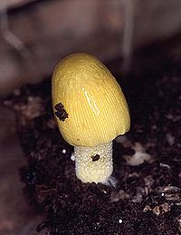 يتكون الجسم الثمري الناضج من ساق stipe اسطواني قد يوجد عليه طرق annulus ينتهي من أعلى بجزء مظلي هو القلنسوة pileus وتحمل القلنسوة من أسفل الخياشيم gills . ويعمل قطاع عرضي في خيشومة يلاحظ أنها تتكون من ثلاث طبقات ، هي من الخارج إلى الداخل كالآتي : 1- الطبقة الخصبة hymenial layer ، وهي الطبقة الخارجية وتتكون من حوامل بازيدية صولجانية الشكل بينها هيفات عقيمة صولجانية . 2- الطبقة تحت الخصبة subhymenial layer وتتكون من هيفات فطرية متماسكة تظهر خلاياها بشكل أقرب للإستدارة . 3- طبقة التراما trama ، وهي الطبقة الموجودة في مركز الخيشومة وتتكون من هيفات مفككة .