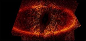 The inner disk is a high-carbon small-grain (10-300 nm) ash disk clustering at 0.1 AU from the star. Next is a disk of larger particles with inner edge 0.4-1 AU of the star. The innermost disk is unexplained as yet.[12]