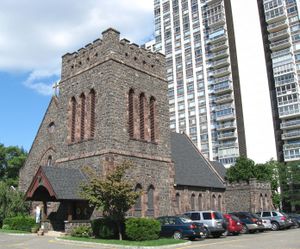 Residential high-rises, several over 100 meters tall, are a prominent feature of the borough.
