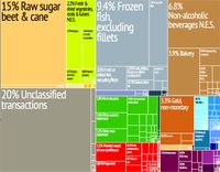 Graphical depiction of Fiji's product exports in 28 color coded categories.