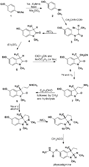 فيزوستيگمين Physostigmine (ويعرف أيضاً بإسم "إسـِرين eserine"، من éséré، وهو الاسم في غرب أفريقيا لفول كالابار) هو parasympathomimetic، وبالتحديد، قلويد مثبط الكولينستراز cholinesterase inhibitor قابل للانعكاس من فول كالابار.