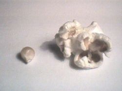 In the popcorn industry, a popped kernel of corn is known as a "flake". Two shapes of flakes are commercially important. "Butterfly" (or "snowflake")[23] flakes are irregular in shape and have a number of protruding "wings". "Mushroom" flakes are largely ball-shaped, with few wings. Butterfly flakes are regarded as having better mouthfeel, with greater tenderness and less noticeable hulls. Mushroom flakes are less fragile than butterfly flakes and are therefore often used for packaged popcorn or confectionery, such as caramel corn.[22] The kernels from a single cob of popcorn may form both butterfly and mushroom flakes; hybrids that produce 100% butterfly flakes or 100% mushroom flakes exist, the latter developed only as recently as 1998.[22]