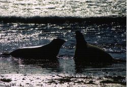 Vagrant adolescent male Elephant seal resting up on Campbell Island, New Zealand