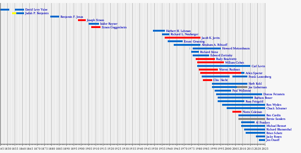 David Levy Yulee[أ] | Democratic | Florida | July 1, 1845 | March 4, 1851 | (5 years, 246 days) |