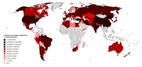 قائمة البلدان حسب المنطقة التي تحصد للتفاح