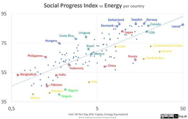 Social Progress Index vs Energy Use per capita. List of countries by Social Progress Index.
