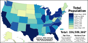 - ^ أ ب "US Census Quickfacts, Population Estimates, July 1 2022". Census.gov. United States Census Bureau. Archived (PDF) from the original on April 26, 2021. Retrieved December 22, 2022.