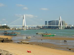 - Puqian Bridge, an under-construction bridge in the northeast part of Hainan, over the entrance to Dongzhai Harbor