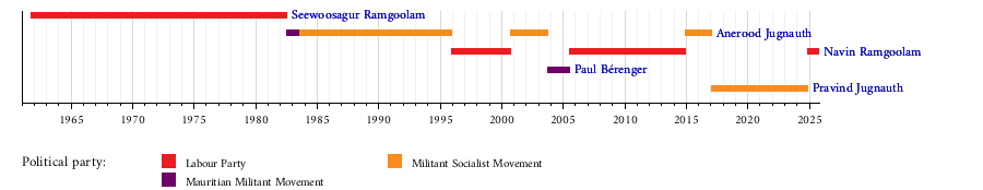 1 | Sir Anerood Jugnauth | 18 years, 225 days |