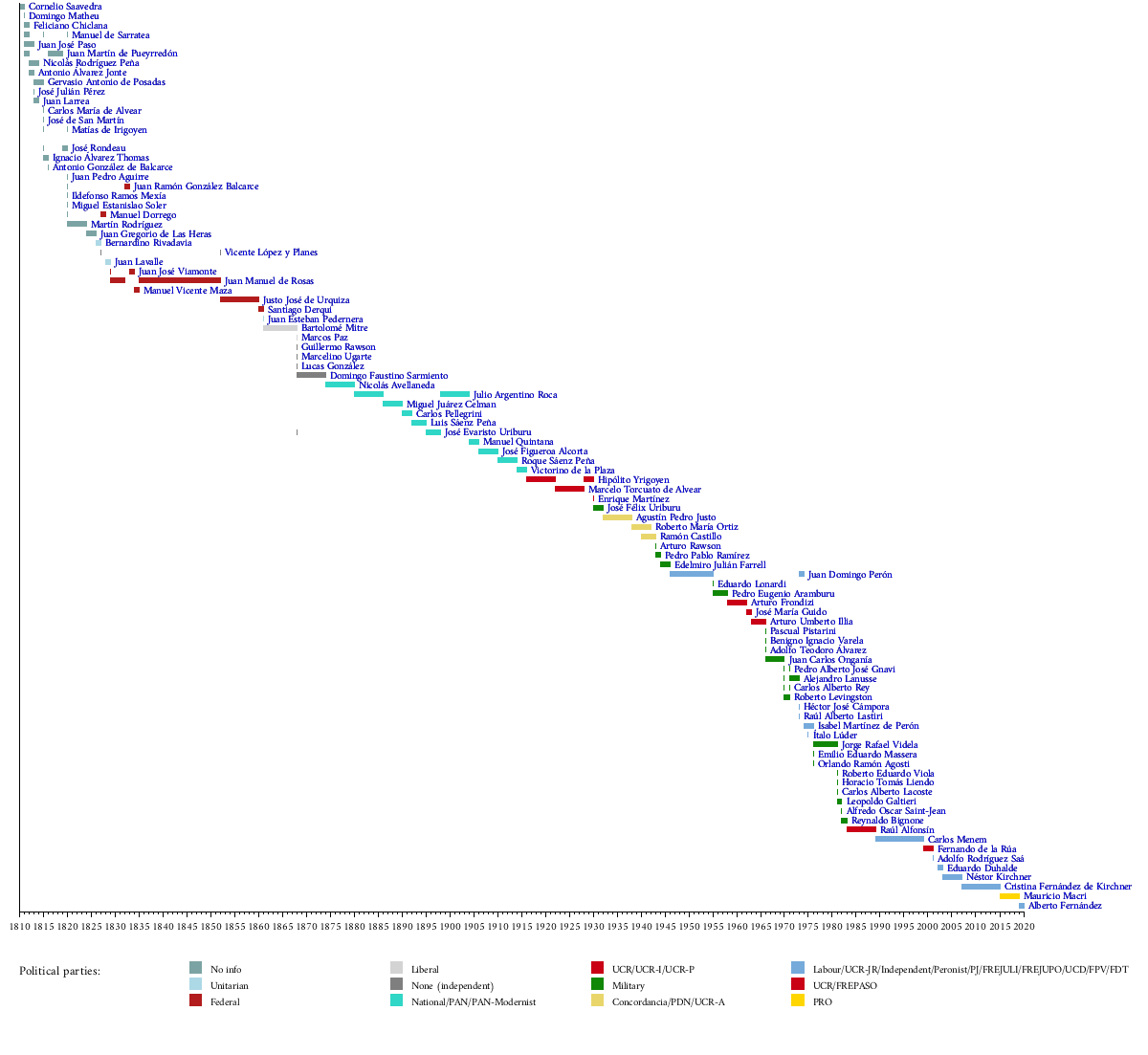 UCR | Radical Civic Union | Unión Cívica Radical | 1916–1930, 1958–1966, 1983–1989, 1999–2001 | |