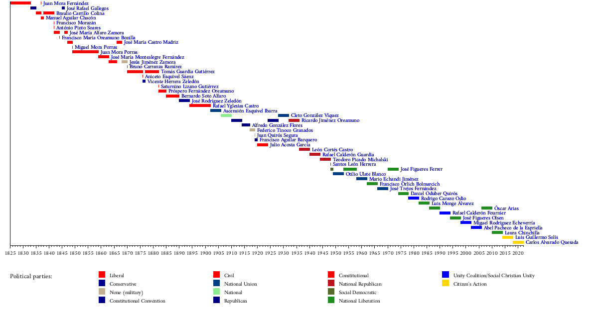 8 May 2018 | Incumbent | Citizens' Action | 2018 | Youngest president since Alfredo González Flores (1914). |