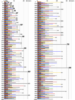 - Table of divisors — A table of prime and non-prime divisors for 1–1000