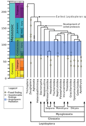 - ^ van Eldijk, Timo J. B.; Wappler, Torsten; Strother, Paul K.; van der Weijst, Carolien M. H.; Rajaei, Hossein; Visscher, Henk; van de Schootbrugge, Bas (10 January 2018). "A Triassic-Jurassic window into the evolution of Lepidoptera". Science Advances. 4 (1): e1701568. Bibcode:2018SciA....4.1568V. doi:10.1126/sciadv.1701568. PMC 5770165. PMID 29349295.