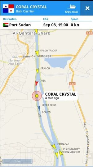 - ^ "غرق قاطرة في قناة السويس بعد اصطدامها بإحدى الناقلات العابرة". سكاي نيوز عربية. 2023-08-05. Retrieved 2023-08-05.