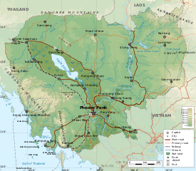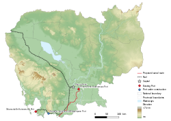 The canal would begin at the Takeo Canal of the Mekong River, pass through the Ta Ek Canal of the Bassac River and finally merge with the Ta Hing Canal of the Bassac River in Koh Thom district.[2] It would connect Phnom Penh directly with the country's only deep-sea port in Sihanoukville and the new port in Kampot.[3] The canal crosses through regions totaling 1.6 million inhabitants.[4]