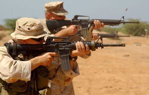 تدريب بالذخيرة الحية للرماية والتعامل مع الأسلحة في مارس 2003، وهو جزء من قوة المهام المشتركة للقرن الأفريقي.