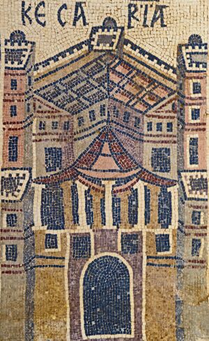 ذُكرت قيصرية في فسيفساء رحوب من القرن الثالث، فيما يتعلق بسكانها غير اليهود.[بحاجة لمصدر]