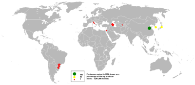 يوضح الجدول التالي إنتاج الكاكي في العالم حسب احصائيات الفاو.