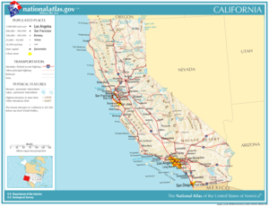 ![]() خريطة الولايات المتحدة، موضح فيها كاليفورنيا | |