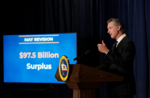في 13 مايو 2022، أعلن گاڤن نوسم حاكم ولاية كاليفورنيا، أن كاليفورنيا تتوقع فائضًا قياسيًا في الميزانية قدره 97.5 مليار دولار، حيث اقترح ميزانية الدولة 300.6 مليار دولار والتي كانت أيضًا علامة تاريخية.[17] وقال نوسم: "لم تشهد أي ولايةأخرى في التاريخ الأمريكي فائضًا كبيرًا مثل هذا"، موضحًا المراجعات التي أجريت على الإنفاق الذي اقترحه لأول مرة في يناير لمدة 12 شهرًا بدءًا من يوليو.