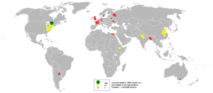 The linseed producing countries are كندا(~34%), China(~25.5%) and الهند(~9%), though there is also significant production in USA(~8%), Ethiopia(~3.5%) and throughout Europe. In the United States, three states, North Dakota, South Dakota, and منيسوتا, raise nearly 100% of this plant.