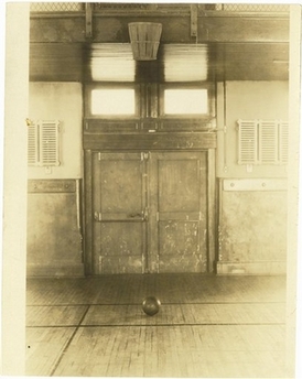 قرر نايسميث أن يستخدم في لعبته الجديدة كرة كتلك المستخدمة في كرة القدم؛ لأنها كرة كبيرة بحجم يكفي لإمساكها بسهولة. بعدئذ طلب من مدير المبنى صندوقين ليستخدمهما كهدفين. ولم يكن لدى المدير أي صناديق فزوده بسلتين للخوخ. وعلقت السلتان في سياج شرفة صالة الألعاب الرياضية الذي يرتفع بمسافة 3م فوق أرض الصالة. وجرت أول مباراة بين الطلاب في درس التربية البدنية الذي يدرسه نايسميث في شهر ديسمبر لعام 1891م.
