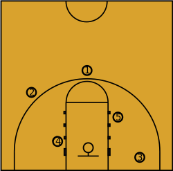• الجناح الأيمن و الأيسر و مهمتهم إما تسديد الكرة من خارج خط 6.15 وتسجيل 3 نقاط أو الهجوم بالكرة لتسديد نقطتين .