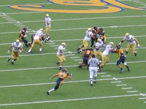 كرة القدم الأمريكية هي لعبة رياضية. تعرف في الولايات المتحدة الأمريكية وكندا باسم كرة القدم (football). الغرض في اللعبة هو تخطي لاعبي الفريق الخصم والوصول إلى نهاية منطقة الخصم. يمكن حمل الكرة باليدين والتقدم بها أو رميها (تمريرها) إلى لاعب آخر في منطقة أخرى لمواصلة التقدم. ويمكن أيضاً أخذ الكرة من يد اللاعب في نفس الفريق مباشرة. يمكن تحقيق هدف بأكثر من طريقة: التقدم وتخطي خط الهدف في منطقة الخصم دون توقف، أو رمي الكرة للاعب آخر موجود بعد خط الهدف، أو ركل الكرة عالياً بين العمودين الموجودين أعلى نهاية منطقة الفريق الآخر. الفريق الفائز هو اللي يحصد أكبر قدر من النقاط في الوقت المحدد.