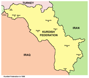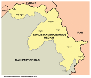كردستان العراق (كردي: ههرێمی کوردستان Herêmî Kurdistan)، وتعرف أيضاً بكردستان العراقية أو كردستان الجنوبية، هي منطقة حكم ذاتي في شمال العراق.[2] يحدها من الشرق إيران، ومن الشمال تركيا، ومن الغرب سوريا وبقية العراق من الجنوب. العاصمة الاقليمية هي أربيل، ويطلق عليها بالكردية Hewlêr.[3] الاقليم رسمياً تحت حطم الحكومة الاقليمية الكردستانية.