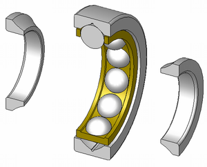 - Another way of fitting more balls into a radial ball bearing is by radially 'fracturing' (slicing) one of the rings all the way through, loading the balls in, re-assembling the fractured portion, and then using a pair of steel bands to hold the fractured ring sections together in alignment. Again, this allows more balls, including full ball complement, however unlike with either slot fill or relieved race constructions, it can support significant axial loading in either direction.