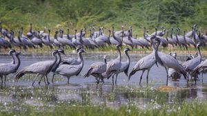 In Khichan, Rajasthan in India, villagers feed the cranes on their migration and these large congregations have become an annual spectacle.