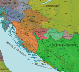 However, the Hungarian-Croatian Kingdom was not enough well prepared and organized and the Ottoman Empire expanded further in the 16th century to include most of Slavonia, western Bosnia and Lika. For the sake of stopping the Ottoman conquering and possible assault on the capital of Vienna, the large areas of Croatia and Slavonia (even Hungary and Romania) bordering the Ottoman Empire were organized as a Military Frontier which was ruled directly from Vienna military headquarters.[98] The invasion caused migration of Croats, and the area which became deserted was subsequently settled by Serbs, Vlachs, Germans and others. The negative effects of feudalism escalated in 1573 when the peasants in northern Croatia and Slovenia rebelled against their feudal lords due to various injustices. After the fall of Bihać fort in 1592, only small areas of Croatia remained unrecovered. The remaining 16،800 متر كيلومربع (6،487 sq mi) were referred to as the reliquiae reliquiarum of the once great Croatian kingdom.[99]