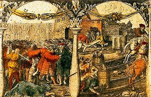 - Jakob Fugger (early extremely rich industrialist in the mining and metal industry on the continent) trying an unfriendly business-takeover of Bergslagen, allied with those of Fugger's economically dependent Pope Leo X (with the Swedish Archbishop Gustav Trolle) and Maximilian I, Holy Roman Emperor in alliance with Christian II of Denmark/Norway, claiming being the union king (also in Sweden), where his marriage in 1515 with Isabella of Austria confirmed the pact.