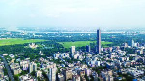 South Kolkata developed after India gained independence in 1947; it includes upscale neighbourhoods such as Bhowanipore, Alipore, Ballygunge, Kasba, Dhakuria, Santoshpur, Garia, Golf Green, Tollygunge, New Alipore, Behala, Barisha etc. The south suburban areas like Maheshtala, Budge Budge, Rajpur Sonarpur, Baruipur etc. are also within the city of Kolkata (as a metropolitan structure).[22] The Maidan is a large open field in the heart of the city that has been called the "lungs of Kolkata"[84] and accommodates sporting events and public meetings.[85] The Victoria Memorial and Kolkata Race Course are located at the southern end of the Maidan. Among the other parks are Central Park in Bidhannagar and Millennium Park on Rajiv Gandhi Sarani, along the Hooghly River.