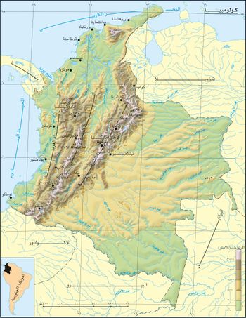 كولومبيا دولة في تقع في الجزء الشمالي الغربي من قارة أمريكا الجنوبية. يحدها من الشمال البحر الكاريبي ومن الشرق فنزويلا والبرازيل ومن الجنوب بيرو و الإكوادور ومن الغرب بنما والمحيط الهادي.