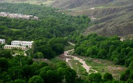 James Morier, the author of The Adventures of Hajji Baba of Ispahan,[26] travelling through Kaleybar in early 19th century described the city in the following words, "Kaleybar... was formerly a considerable place. Its extensive gardens have become a forest of fruit-trees, where the walnuts grow to an immense size..."[27] More recently, Jamie Maslin, a Canadian traveler write, " ... was surrounded by steep green mountains, the peaks of which remained unseen, shrouded in a slowly drifting mountain mist. It was a great location and once again so very different from most people's perception of Iran - not dry and parched like its central deserts, but as lush and green as merry old mother England."[28]