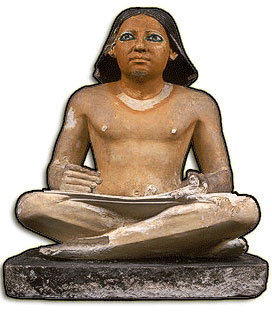 كانت وظيفة الكاتب من أهم الوظائف التي شغلها المصري القديم ، فقد كان من دواعي فخر المرء أن يذكر أنه كاتب ملم بعلوم الكتابة وفنونها ، وقد شاعت تماثيل الكتبة على مر عصور الحضارة المصرية ، وتمثال الكاتب المصري ، الذي أتخذته شعارًا لها يرجع إلى عصر الأسرة الخامسة في الدولة القديمة وهو مصنوع من الحجر الجيري ، ومن مقتنيات المتحف المصري ، ويمثل صاحبه جالسًا في وضع القرفصاء واضعًا بردية على ساقيه ، ويمسك بريشته ، بينما ينظر إلى الأمام وكأنه يتأهب للكتابة .