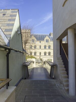 In April 2013 HRH The Duke of Kent officially opened a new quadrangle named after the lead donor Chris Rokos[14] The new buildings include a 170-seat multi-purpose auditorium, a new café, art gallery, and teaching and function rooms. The development is physically joined to the college's existing city-centre site via a new bridge crossing Brewer Street and the original medieval city wall, and 'landing' in the old Fellows' Garden adjacent to Chapel Quad. Having historically been one of the university's dimensionally smaller colleges, following the opening of the new building, undergraduates are now able to live in college premises for all years of study. Postgraduates also benefit from more rooms, and there are six flats for those with partners.[15]