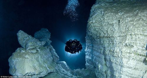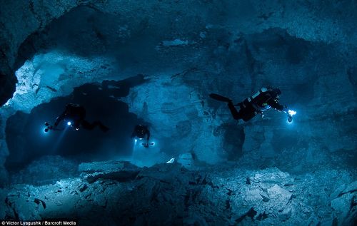 يبدو كمجموعة من أفلام الحركة في هوليوود ولكن أخذت هذه الصور من قبل فريق من الغواصين الخبراء في كهف في أعماق روسيا.