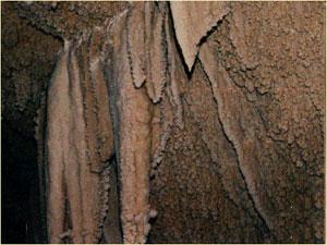 وتتوزع الصواعد والهوابط من الألباستر النقي في شكل خلاب وفي أرضية الكهف في الركن الشرقي منه يوجد مجري مائي ينخفض عن مستوي أرضية الكهف يعتقد أنه وسيلة تصريف المياه المتجمعة في الكهف.