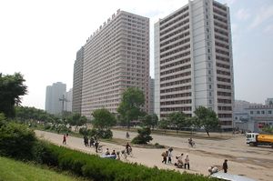 تأوي الشقق الجاهزة أعداد كبيرة من السكان. الإسكان في كوريا الشمالية بالمجان، لكنه الشقق ضيقة كما هو الحال مع العديد من الدول الآسيوية الأخرى.[21]