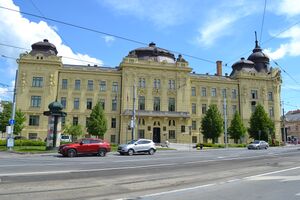 In 1828, there were three manufacturers and 460 workshops.[33] The first factories were established in the 1840s (sugar and nail factories). The first telegram message arrived in 1856, and the railway connected the city to Miskolc in 1860. In 1873, there were already connections to Prešov, Žilina, and Chop, Ukraine (in today's Ukraine). The city gained a public transit system in 1891 when the track was laid down for a horse-drawn tramway. The traction was electrified in 1914.[33] In 1906, Francis II Rákóczi's house of Rodostó was reproduced in Košice, and his remains were buried in the St. Elisabeth Cathedral.[34]