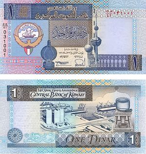 كما أن العملات المعدنية لها 6 فئات (فلس"تم إلغاؤه"، 5 فلوس، 10 فلوس، 20 فلس، 50 فلس و100 فلس) ويعتبر الدينار الكويتي صاحب أعلى سعر صرف في العالم ويساوي الدينار الواحد 3.48202 دولارا امريكيا تقريبا كما في 31 مايو 2009.