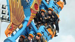 كيم جونگ-اون يركب الأفعوانية مع الدبلوماسي البريطاني بارنابي جونز، كوريا الشمالية، 2 أغسطس 2012.[34]