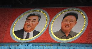 الشعب يبجـِّل[19] تمثال كيم إل-سونگ وكيم جونگ-إل، أبريل 2012.