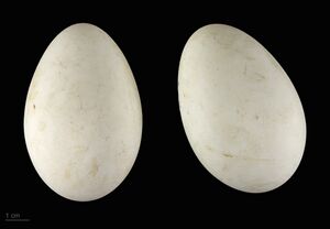 During copulation, the male steps onto the female's back from the side, hooks his feet over her shoulders, holds out his wings for balance and finally bends his legs to lower himself for cloacal contact, as happens in most birds. In turn, the female holds out her wings almost horizontally. The process is accompanied by bill clattering from the male as he regularly opens and closes his mandibles and vigorously shakes his head to beat his bill against the female's.[3] In turn, the female keeps her bill horizontal with the male's, or inclined downward at approximately 45 degrees.[3] Average copulation time in this species has been calculated as 15.7 seconds.[3]