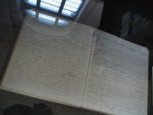 Ludwig Wittgenstein himself had absolute pitch,[39] and his devotion to music remained vitally important to him throughout his life; he made frequent use of musical examples and metaphors in his philosophical writings, and he was unusually adept at whistling lengthy and detailed musical passages.[40] He also learnt to play the clarinet in his 30s.[41] A fragment of music (three bars), composed by Wittgenstein, was discovered in one of his 1931 notebooks, by Michael Nedo, director of the Wittgenstein Institute in Cambridge.[42]